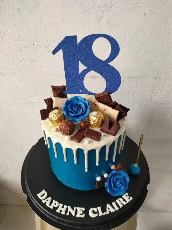 Blue 18th Birthday Cake With Chocolate Drip Cake Design