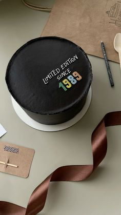 Minimalist black bento-style cake with 'Limited Edition Since 1989' message in white and colorful numbers.
