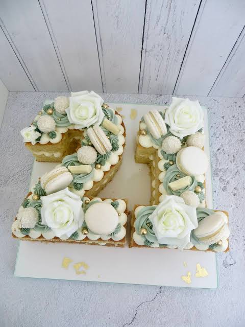 21st birthday Rectangle - white, rose, green theme with white roses and sage green and white buttercream swirls