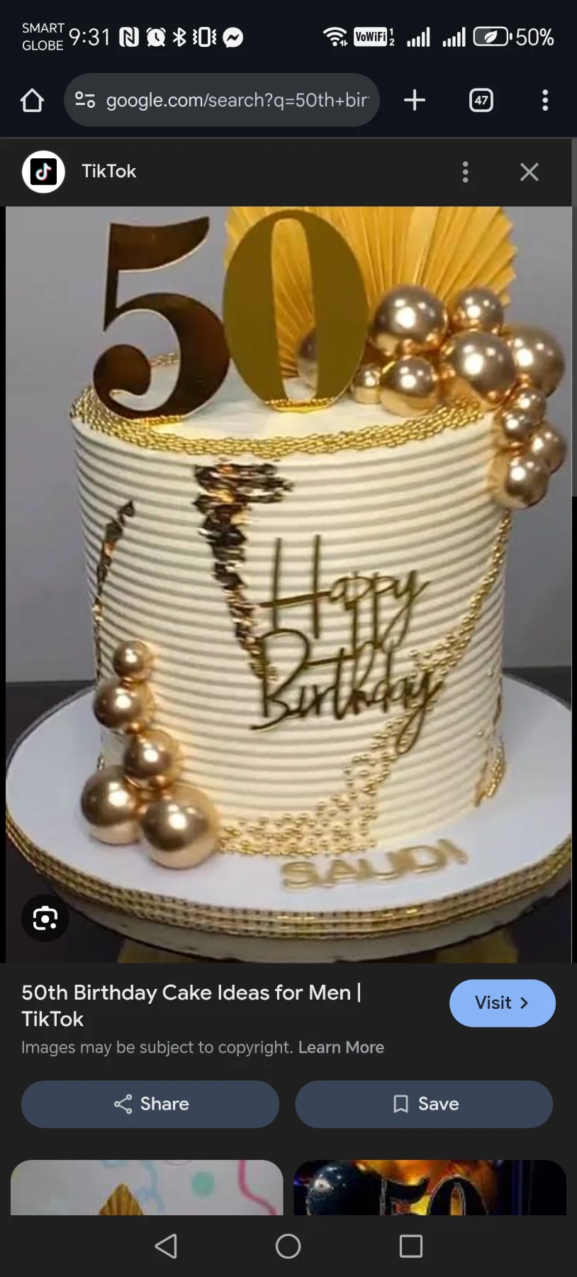 Elegant 50th Birthday Cake With Gold Accents Cake Design