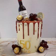 50th Birthday Wine Theme Cake | Custom 1-Tier Design Cake Design