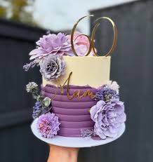 60th Birthday Purple Floral Cake | Custom 1-Tier Design Cake Design