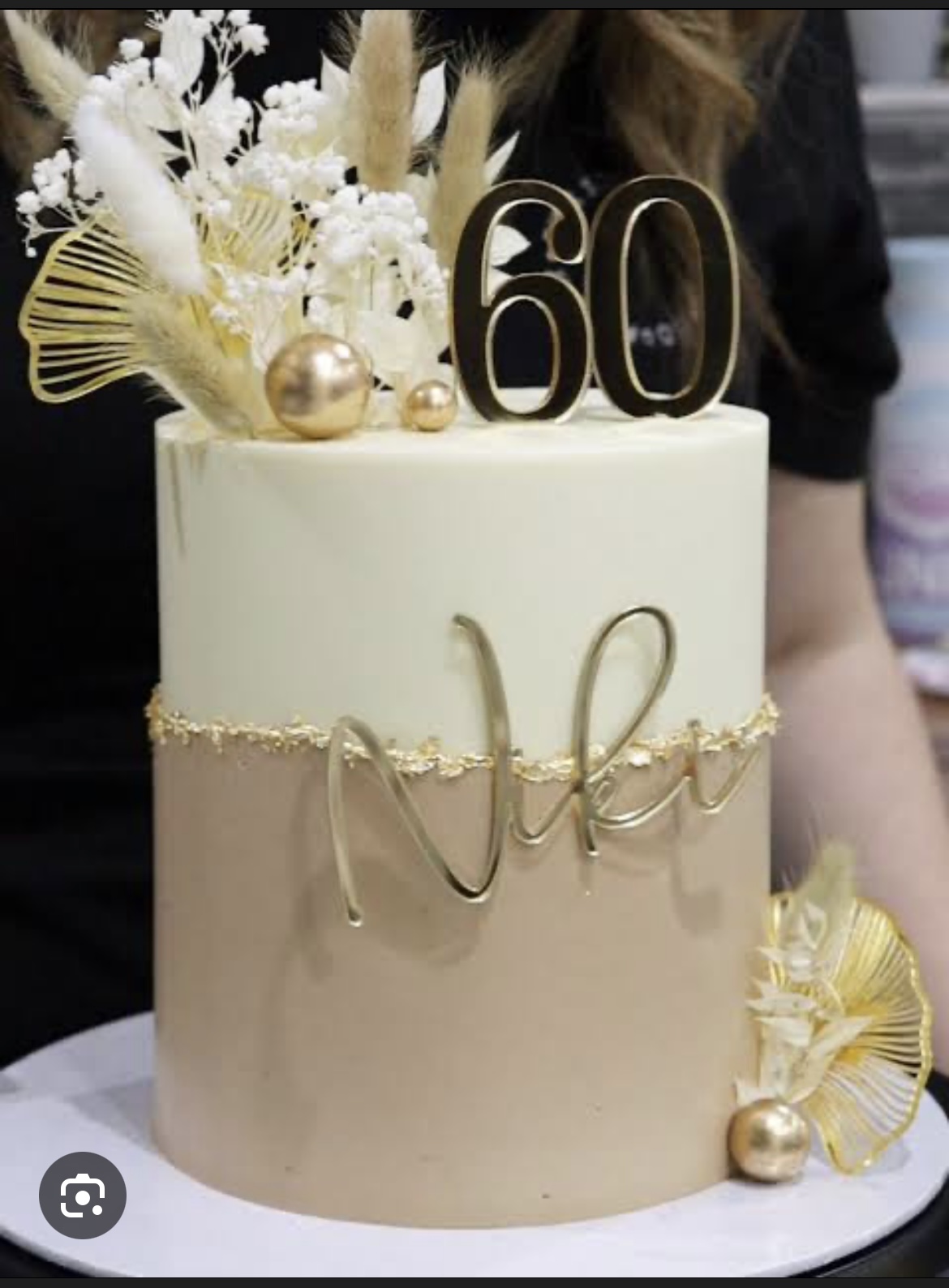 Elegant 60th Birthday Cake | Custom Gold & Tan Design Cake Design