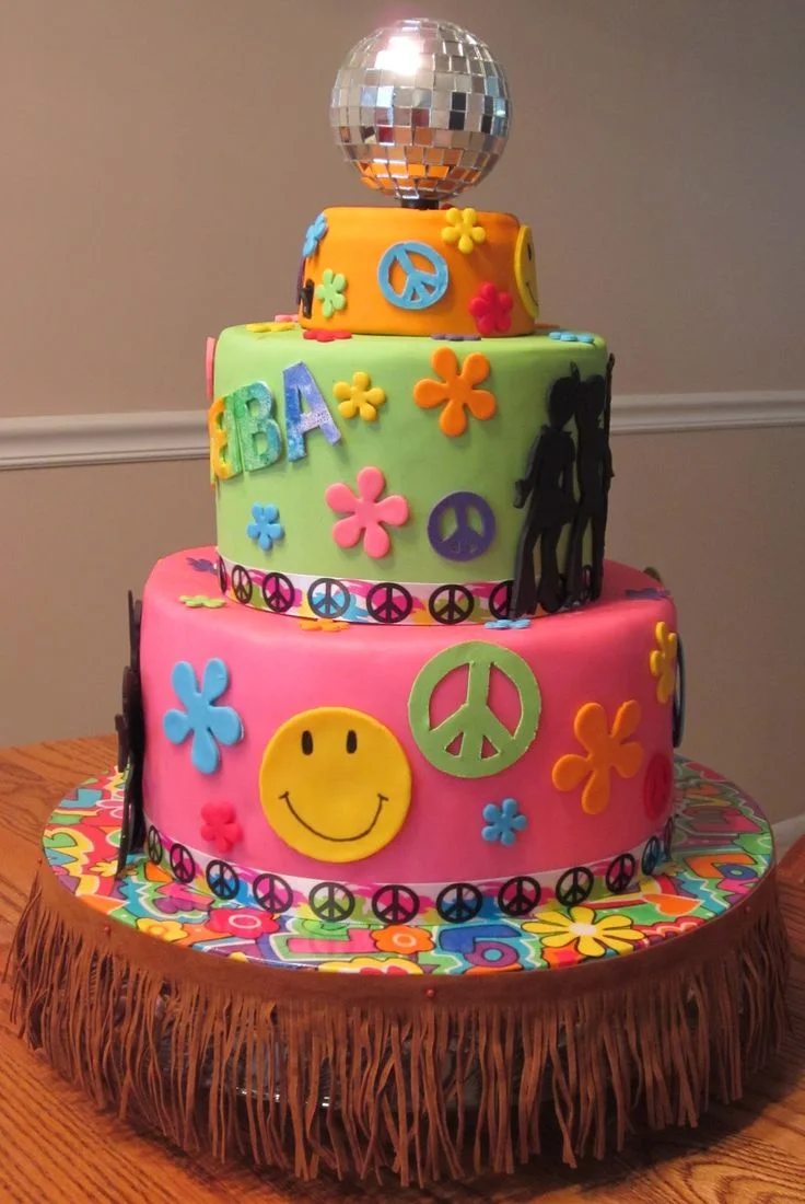 70s Disco Peace And Love 3-Tier Fondant Cake Design