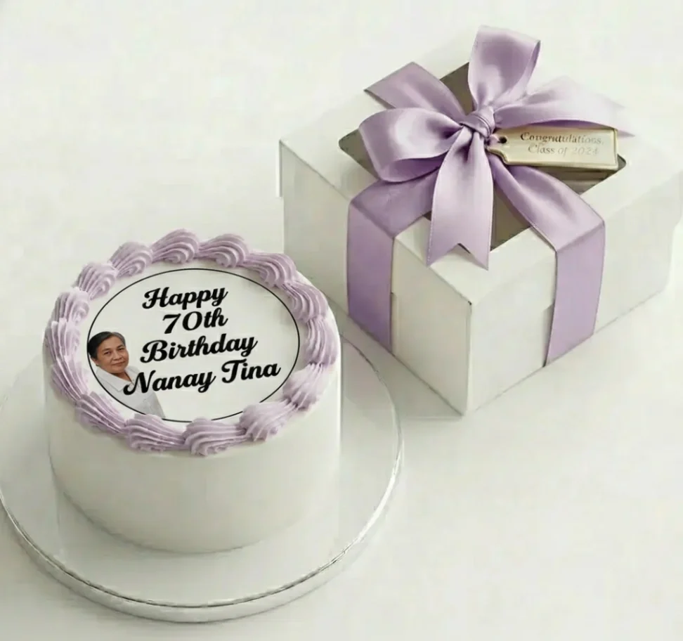 70th Birthday Photo Cake | Custom White & Lavender Cake Design