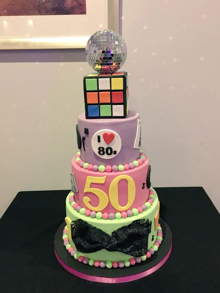 80s Themed 50th Birthday Cake | Custom 3-Tier Design Cake Design