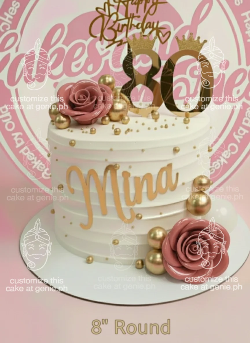 80th Birthday Cake With Gold Accents | Custom 1-Tier Cake Design