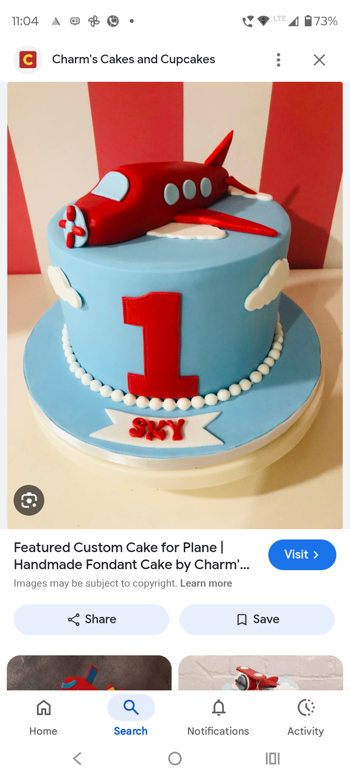 Red Airplane First Birthday Fondant Cake Design
