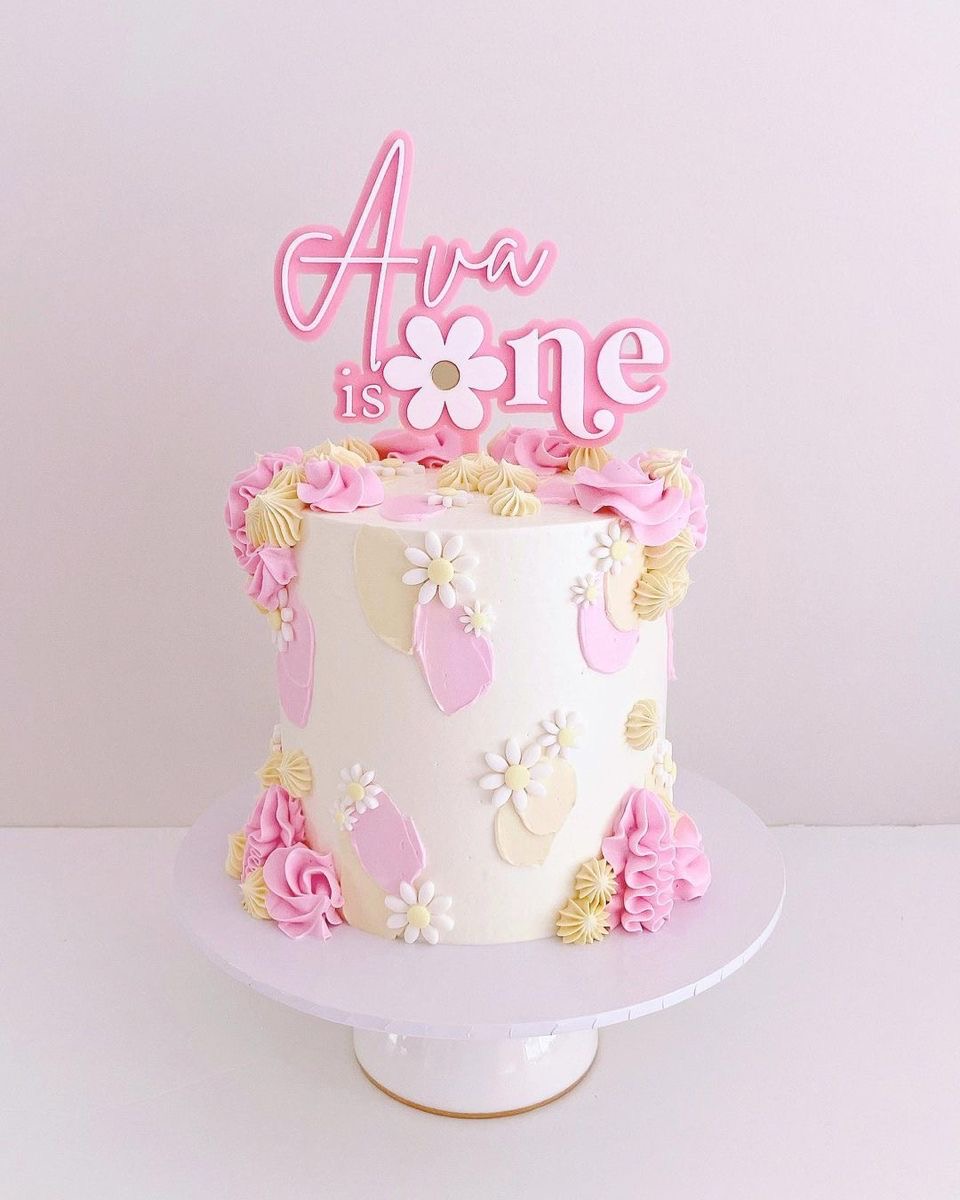 Ava Is One Daisy Birthday Cake | Custom 1-tier Design Cake Design