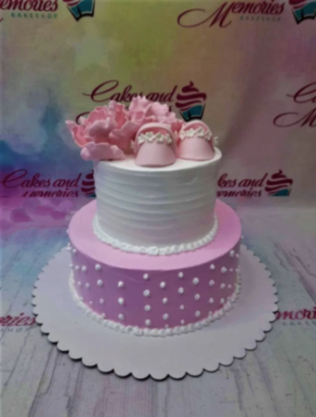 Pink Baby Shower Cake With Peony And Shoes Cake Design