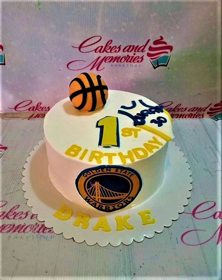 Golden State Warriors basketball themed birthday cake for Drake with a 3D basketball and jersey topper.