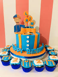 Blippi blue orange 1 Tier Fondant - orange, white theme with printout of Blippi character and large orange gumpaste bow