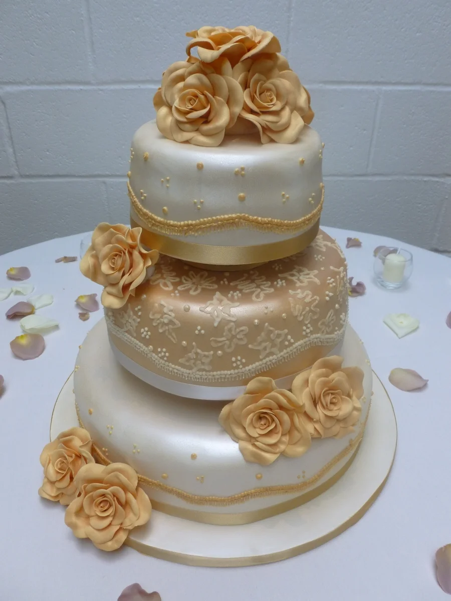 Elegant Champagne Floral Wedding Cake | 3-Tier Fondant Design Cake Design