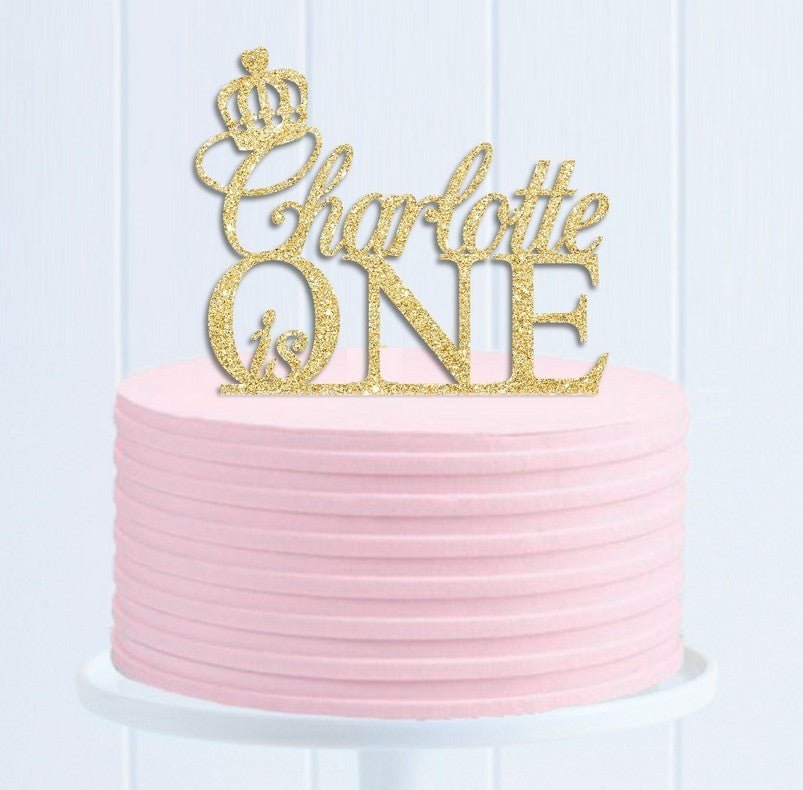 - gold glitter Charlotte is One with crown
