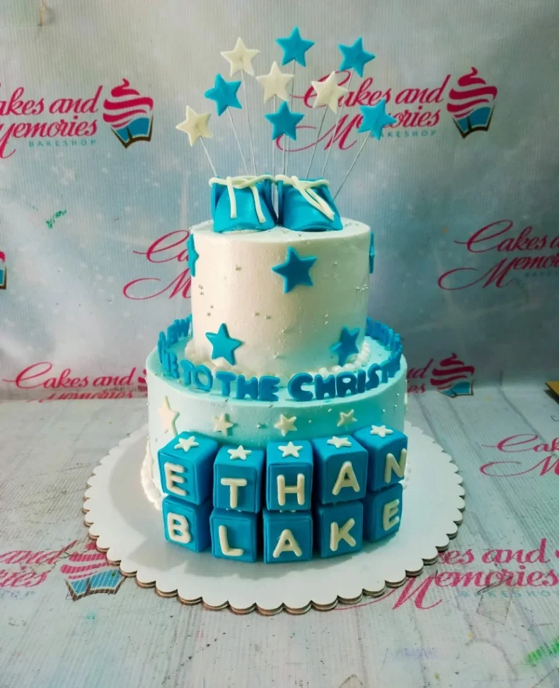 Ethan Blake Christening Cake | 2-Tier Blue Star Design Cake Design