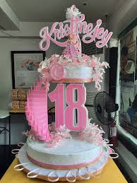 Debut pink 2 Tier - white, pink theme with KristineJoy name topper and Pink wavy structure
