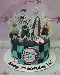 Demon Slayer 1 Tier Fondant - red, black, teal theme with Demon Slayer characters and Demon Slayer logo
