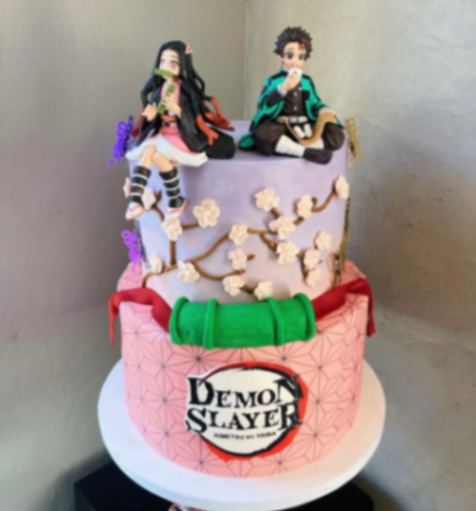 Demon Slayer Anime Birthday Cake | Custom 2-Tier Design Cake Design