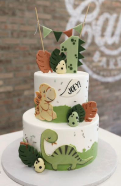 Dinosaur First Birthday Cake | Custom 2-Tier Fondant Cake Design
