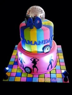 Disco Party Birthday Cake | Custom 2-Tier Fondant Cake Design