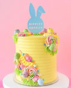 Easter Bunny Ribbed Yellow Cake | Custom Spring Celebration Cake Design