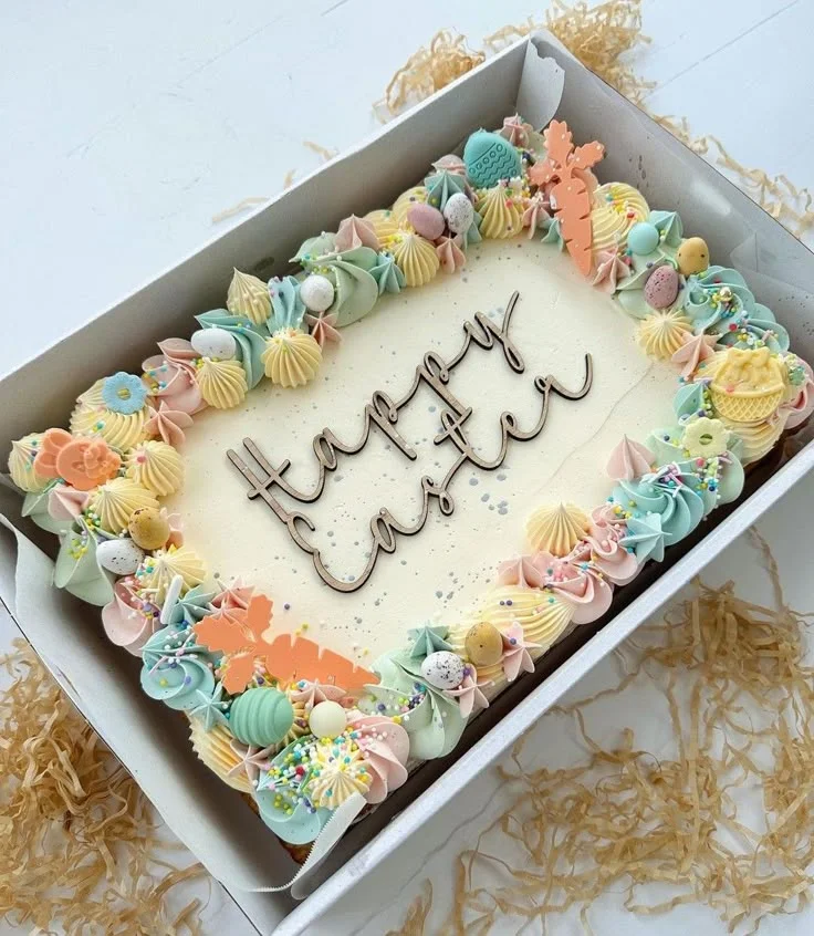Pastel Easter Celebration Rectangle Cake Design