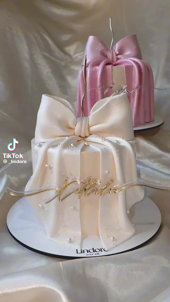Elegant Ivory Bow Birthday Cake | Custom Fondant Design Cake Design