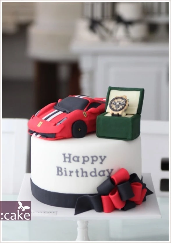Ferrari Car And Rolex Watch Birthday Cake Design