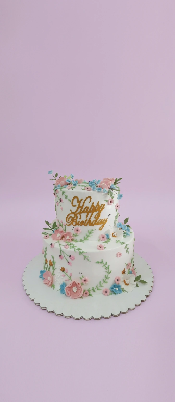 Floral Birthday Cake | Custom 2-Tier Flower Cake Design