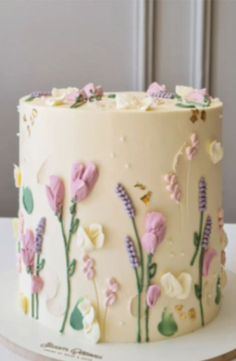 Floral Palette Knife Art Cake | Custom 1-Tier Design Cake Design