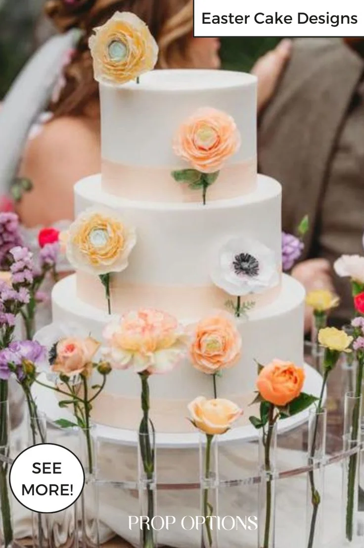 Elegant 3-Tier Floral Wedding Cake | Peach Ranunculus Design Cake Design
