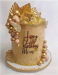 Gold Mom Birthday Cake | Elegant Crown Design Cake Design