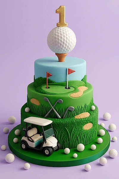 Golf Themed 1st Birthday Cake | Custom 3-Tier Design Cake Design