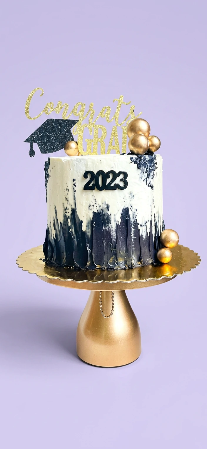 Graduation 2023 Cake | Custom Navy And Gold Cake Design