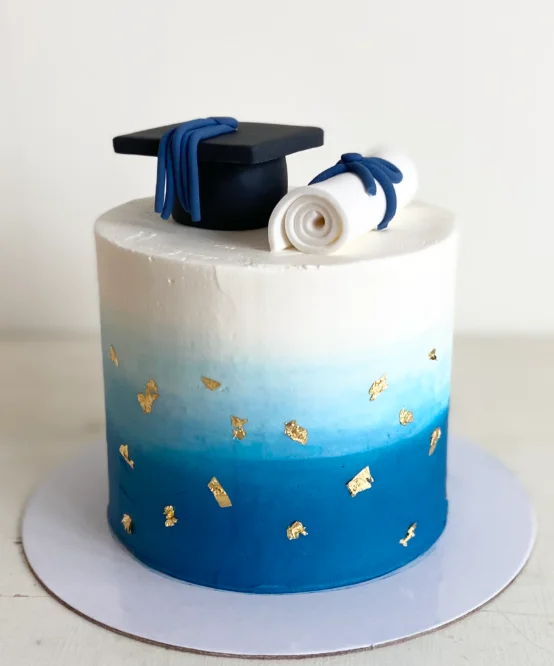 Blue Gradient Graduation Cake | Custom 1-Tier Cake Design