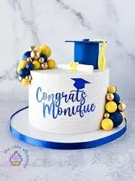 Blue And Gold Graduation Cake | Custom 1-Tier Design Cake Design