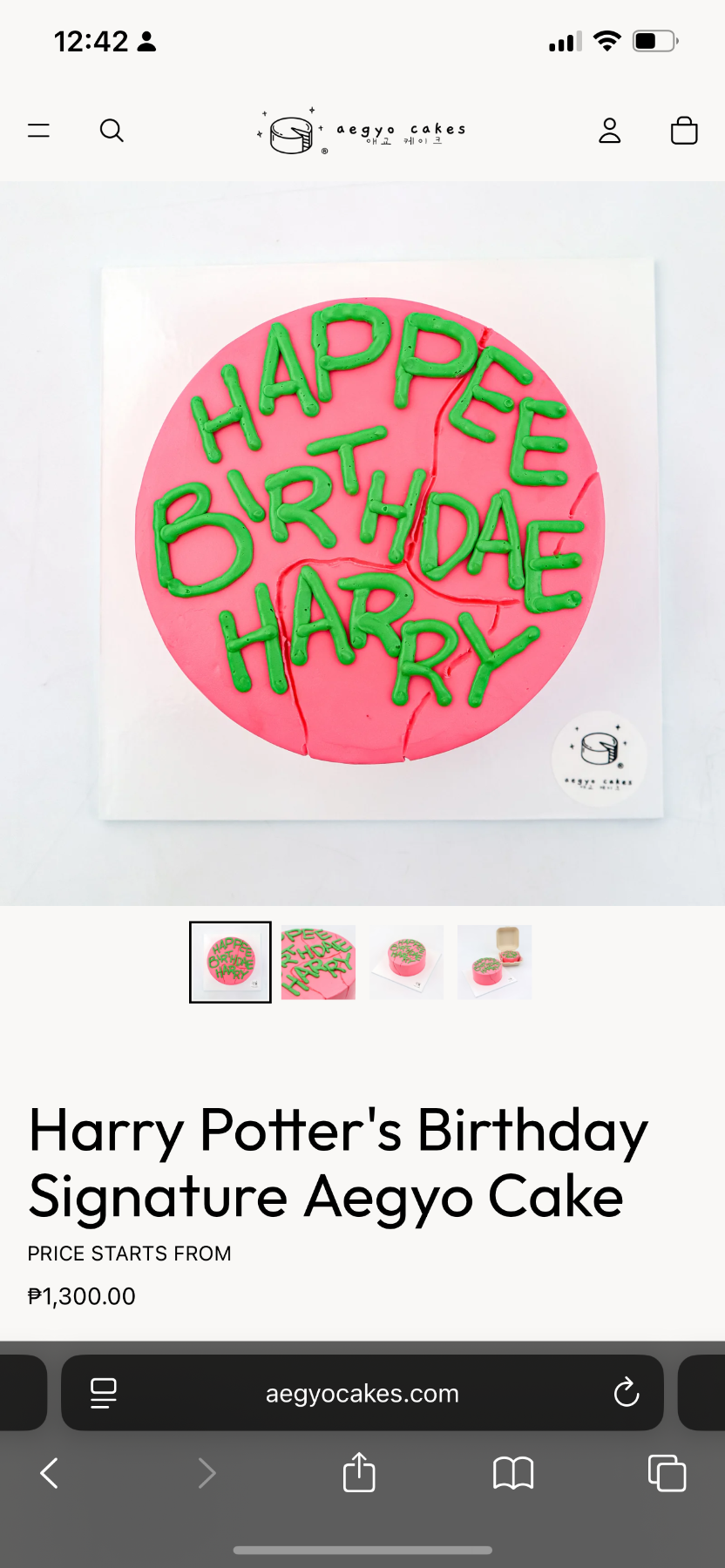 Pink Harry Potter inspired birthday cake with green piped icing text and cracks on a white base board.