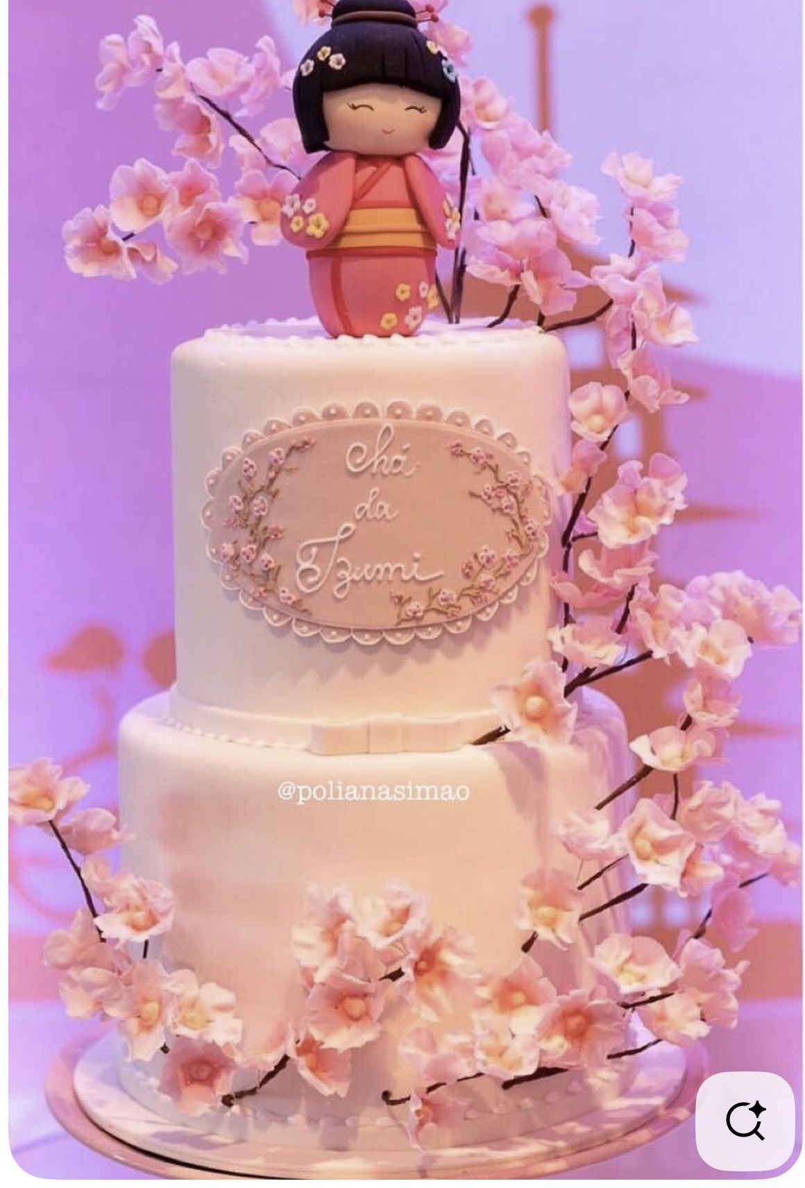 Japanese Geisha Cherry Blossom Cake | 2-tier Fondant Cake Design