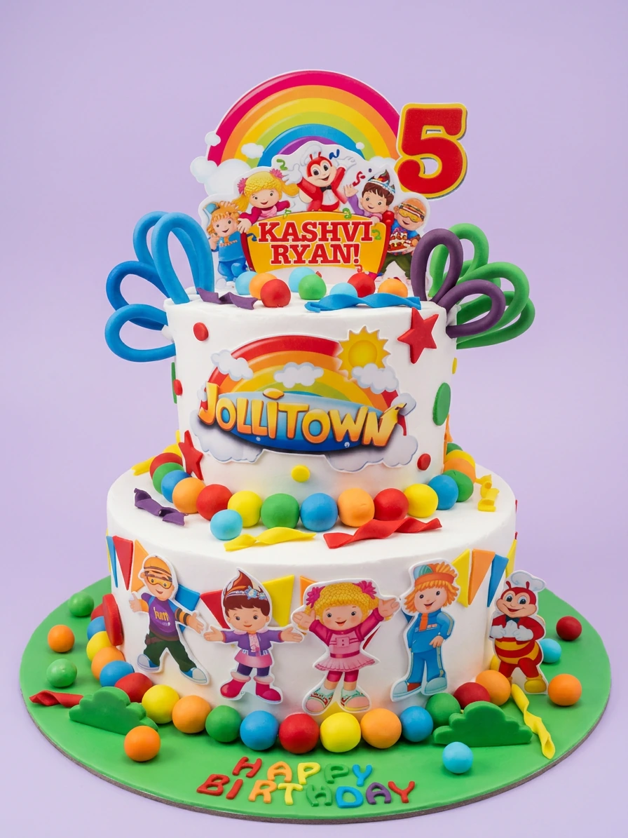 Jollitown Birthday Cake | Custom 2-Tier Kids Cake Design