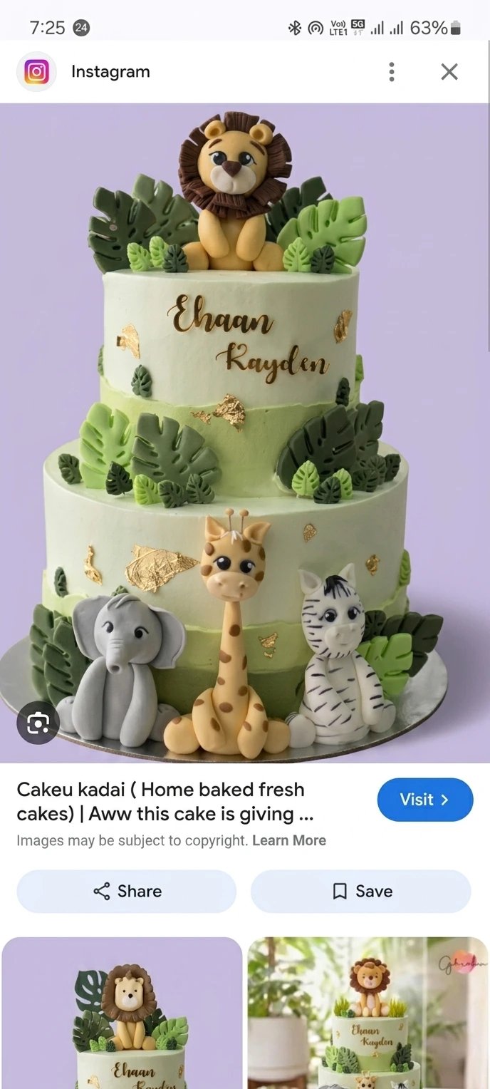 Jungle Safari Animal Birthday Cake | Custom 2-Tier Cake Design