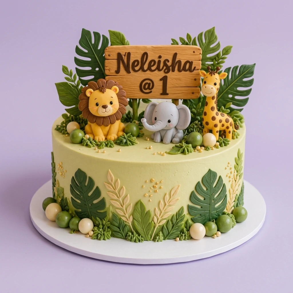 Jungle Safari Birthday Cake | Custom 1-Tier Cake Design