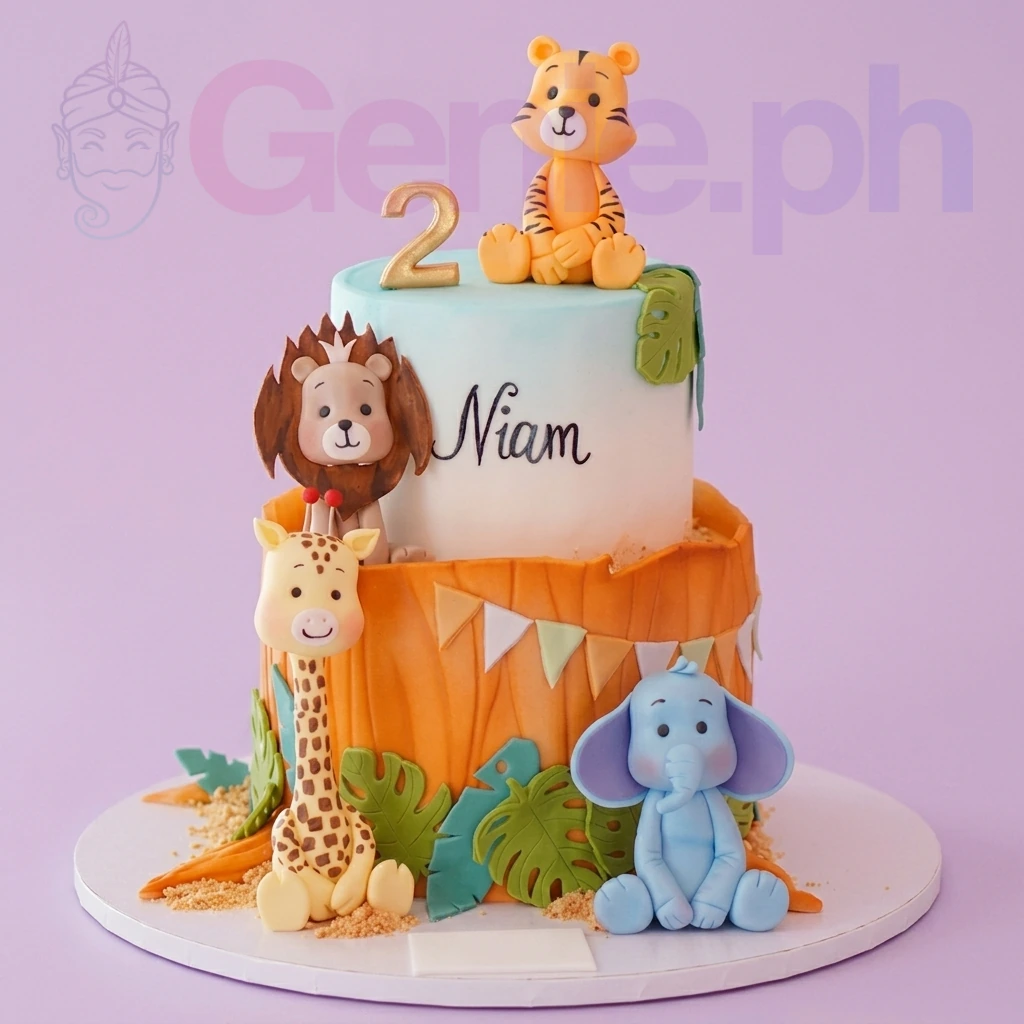 Jungle Safari Animal Birthday Cake | Custom 2-Tier Design Cake Design