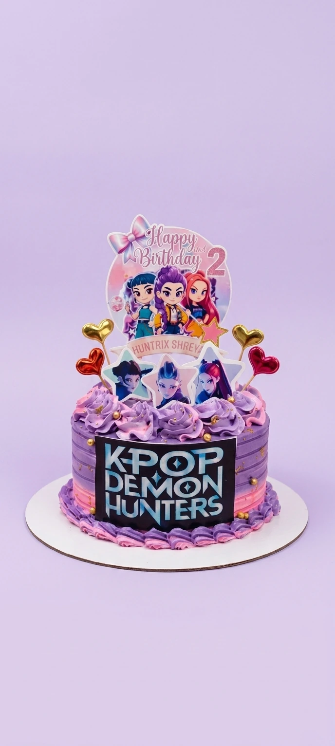 K-Pop Demon Hunters Birthday Cake | Custom Purple Cake Design