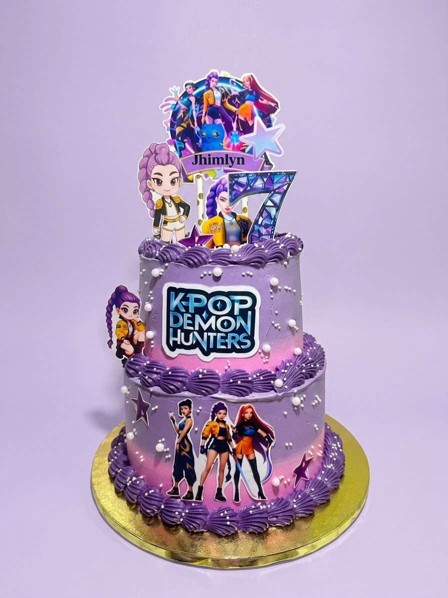 K-Pop Demon Hunters Birthday Cake | Custom 2-Tier Cake Design