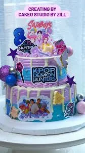K-pop Demon Hunters Birthday Cake | Custom 2-Tier Design Cake Design