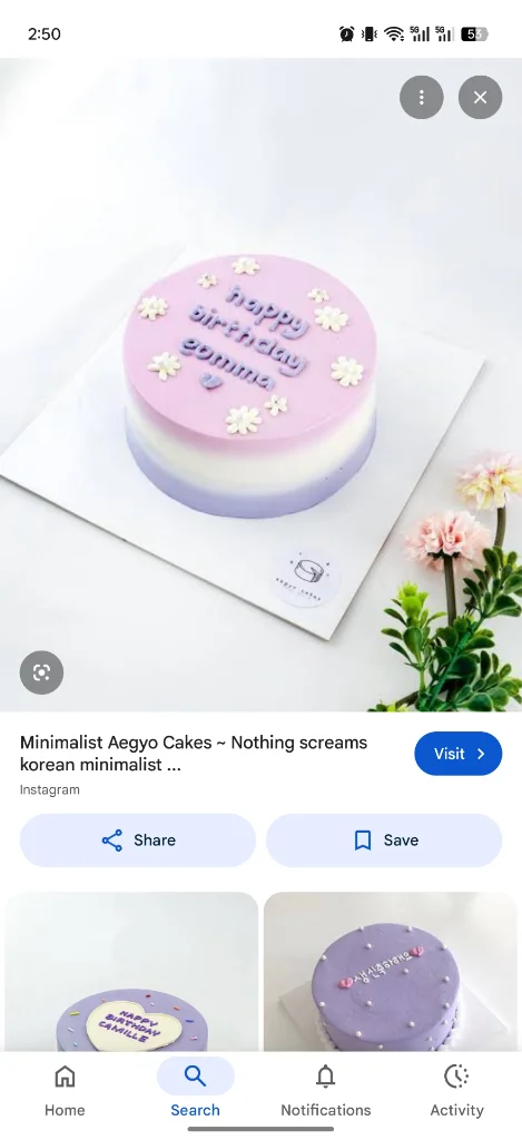 Minimalist lavender and white gradient birthday cake with white icing flowers and purple piped message for Emma.