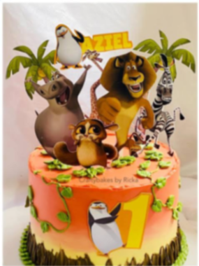 Madagascar Themed Birthday Cake | Custom 1-Tier Jungle Cake Design