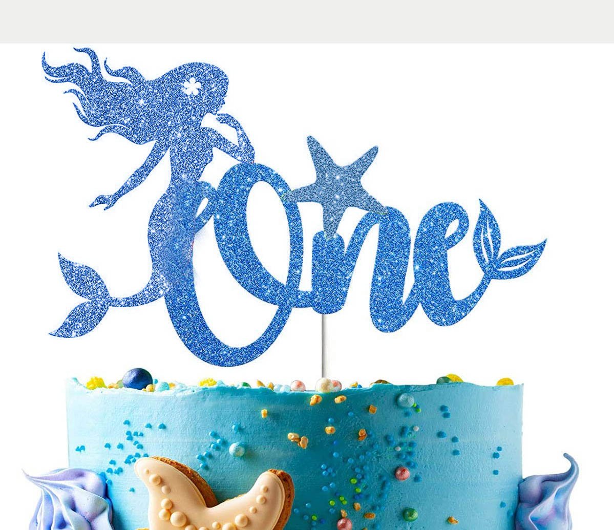- glittery blue mermaid one topper