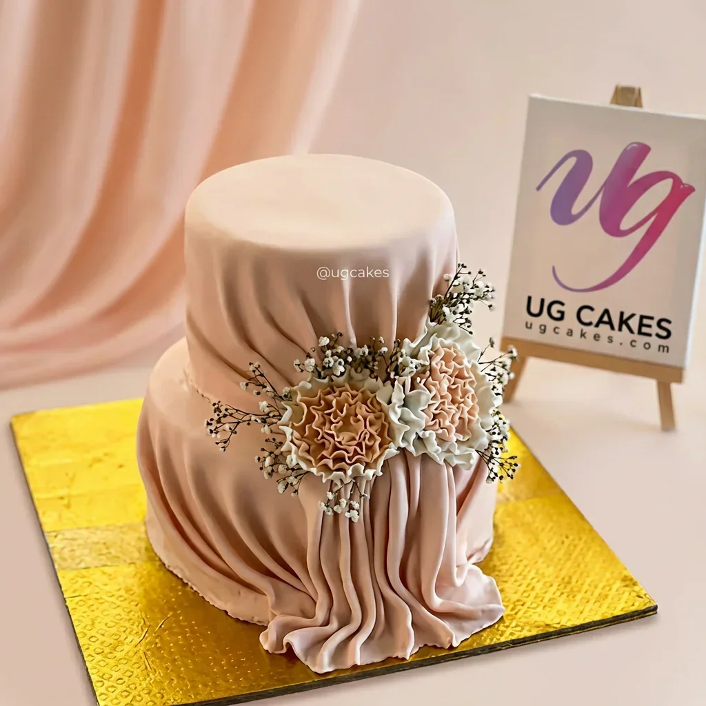 Elegant Peach Draped Fondant Cake | Custom 2-Tier Floral Design Cake Design