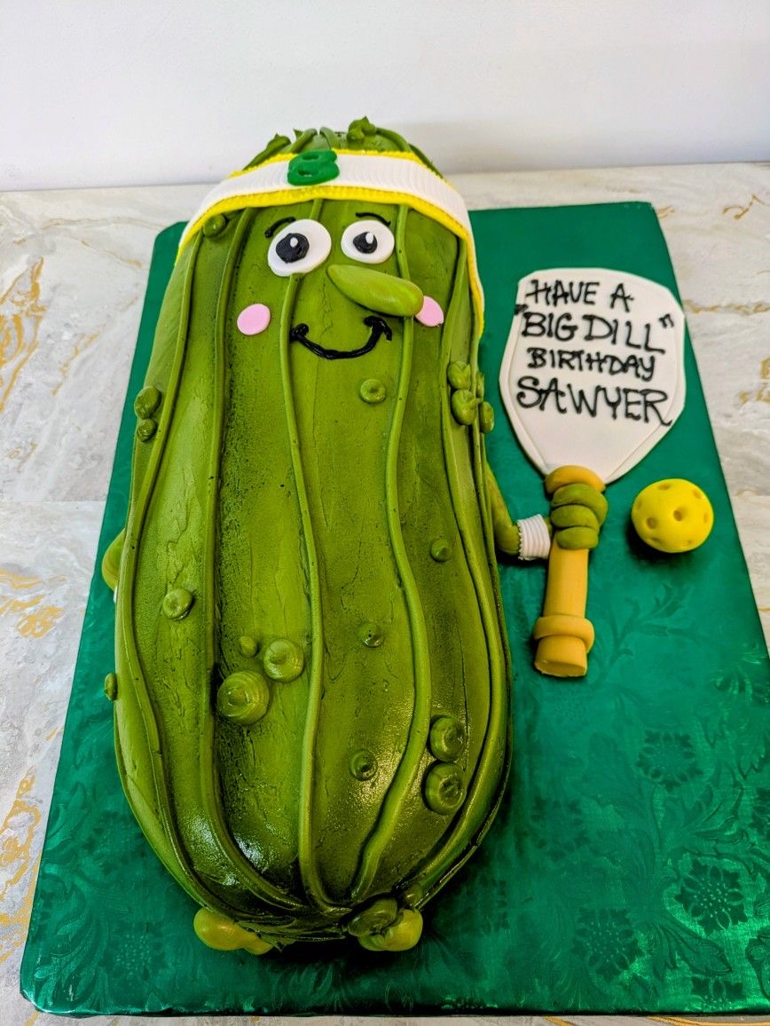 Pickleball Pickle Birthday Cake | Custom Character Cake Design